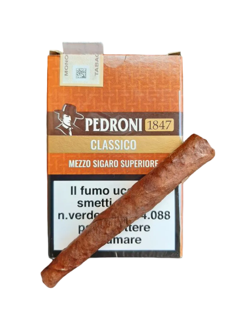 Il Pedroni Classico Mezzo Sigaro Superiore è un sigaro italiano della storica linea Pedroni, pensato come versione compatta e più rapida del Pedroni Classico tradizionale. Realizzato con tabacco Kentucky nella fascia e nel ripieno, offre un profilo aromatico classico, leggermente speziato e terroso, tipico dei sigari tradizionali italiani. È ideale per chi desidera un’esperienza di fumata più breve ma con il carattere autentico del sigaro classico italiano.