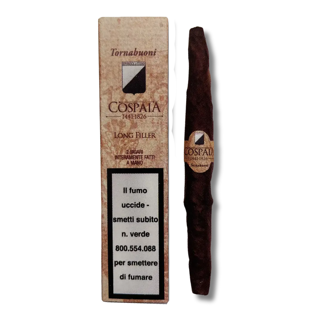 Il Tornabuoni Cospaia Long Filler è un sigaro Toscano artigianale che unisce tradizione e struttura in una fumata piena e complessa. Realizzato con tabacco Kentucky della Valtiberina selezionato e lavorato con metodi tradizionali, il Cospaia Long Filler offre un profilo aromatico equilibrato con note di legno, spezie, cuoio e un finale leggermente dolce. Grazie alla costruzione long filler, la combustione è più regolare e duratura, rendendolo ideale per fumatori esperti che apprezzano qualità e profondità.