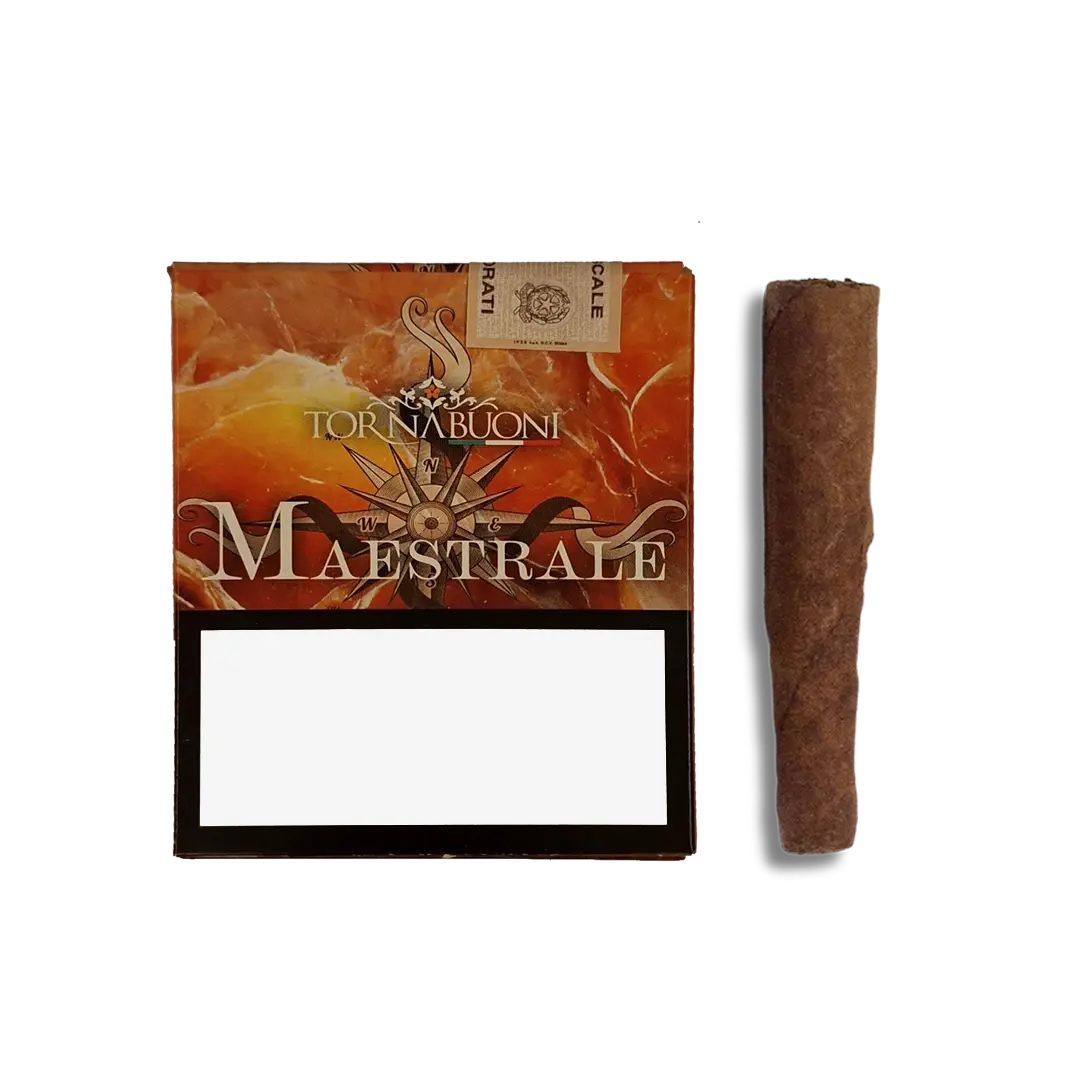 Il Tornabuoni Maestrale è un sigaro Toscano artigianale di qualità superiore, realizzato con tabacco Kentucky della Valtiberina. Caratterizzato da una fumata equilibrata e profonda, offre un profilo aromatico che fonde note di legno, spezie e sentori leggermente affumicati. La sua lavorazione artigianale e la stagionatura accurata conferiscono una combustione regolare e un’esperienza di fumo ricca e piacevole, ideale per chi ama i sigari Toscani dal corpo medio–pieno.