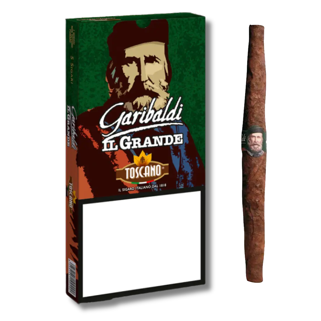 Il Toscano Garibaldi Il Grande è una variante più ampia e corposa del popolare sigaro Toscano Garibaldi, nata per offrire una fumata più ricca ma sempre equilibrata. Realizzato con tabacco Kentucky italiano affumicato, mantiene il profilo aromatico caratteristico della famiglia Toscano ma con una maggiore presenza di sapore dovuta alla sua forma “pancia larga” che favorisce un tiraggio più ampio. Morbido e piacevole, è ideale sia per fumatori esperti sia per chi cerca una fumata piacevole e rotonda con note di legno e spezie.
